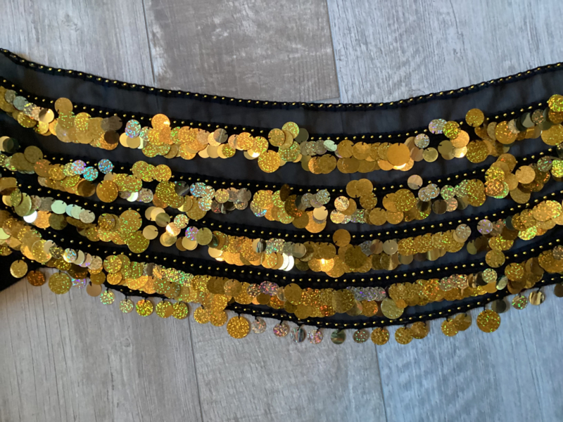 Rechthoeksjaal met 4 rijen mix van grote en kleine hologram pailletten.