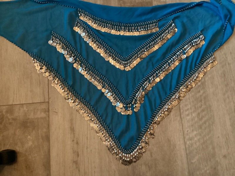 D10 Driehoeksjaal met rijen munten en pegels in V-vorm