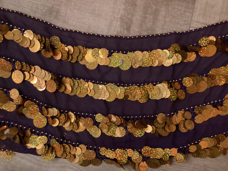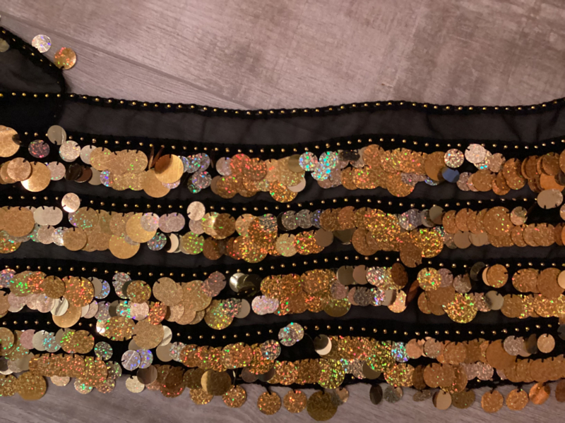 RR11M Heupsjaal met rijen mix van grote en kleine goudkleurige pailletten - diverse kleuren te bestellen.